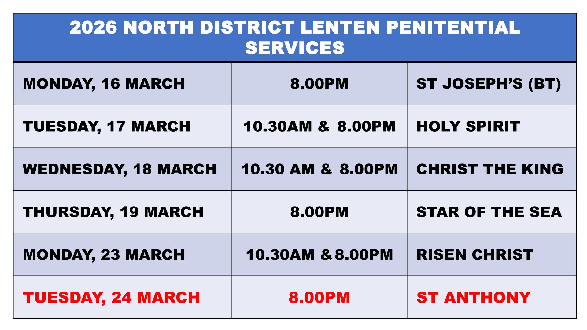 LENTEN PENITENTIAL SERVICE IN THE NORTH DISTRICT